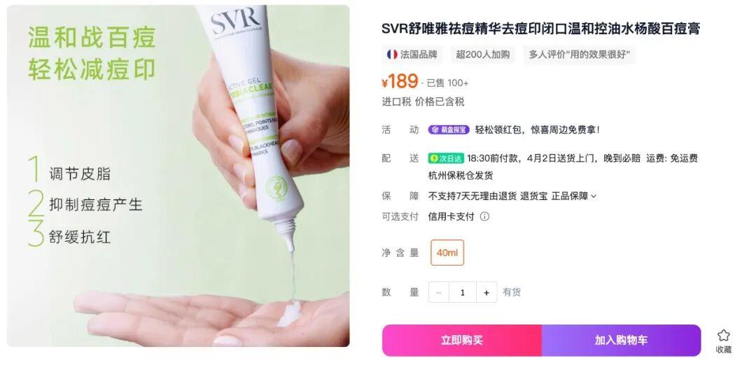 海外旗艦店 189 元的祛痘精華,咱直接給你立省 110 元!這力度真的是嘎嘎給力了,妥妥可以衝了!超級適合青春期容易長痘,經期前容易爆痘和油皮的寶子們。