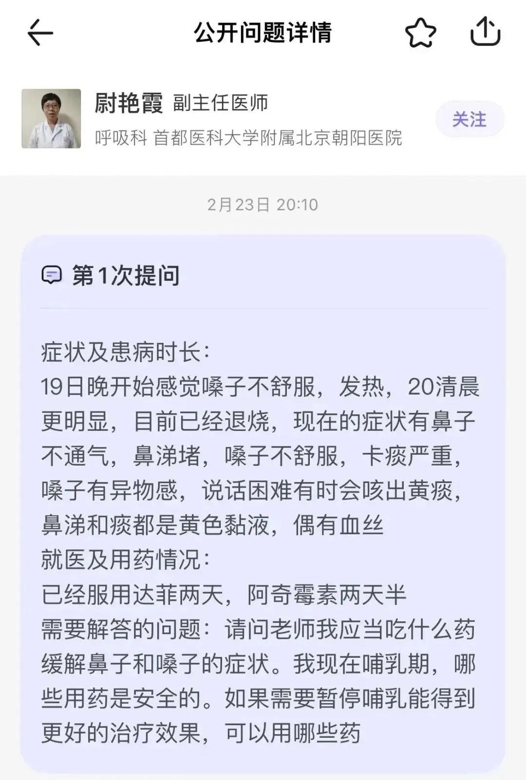看完之後,可能還會有一些特別具體的情況,說明書無法全面覆蓋,這時候直接掏出手機問醫生,是獲取針對性解答的更高效辦法。