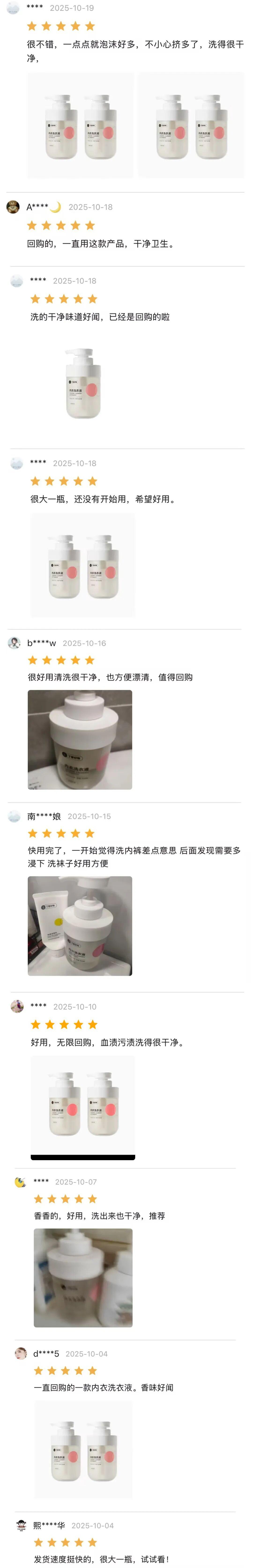 千萬不要因爲這款內衣洗衣液清潔力在線,就擔心會有什麼刺激成分!爲貼身衣物研發的洗衣液,溫和不刺激,才能安心貼貼~