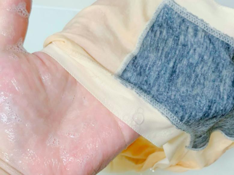 當天換下的內褲,用 25 到 35 度的水打溼(大概是手摸起來稍微有點溫溫的感覺),擠上內衣洗衣液(靜置一會兒更佳),然後搓掉即可。