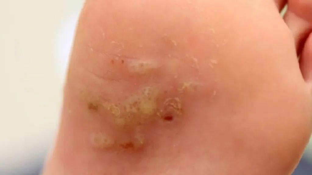 特點:這是最常見的一種足癬,趾縫糜爛,浸漬發白,去除表面發白的部分,會露出紅色糜爛面,有時還會有液體滲出。通常有明顯的瘙癢,繼發細菌感染後會有明顯的臭味。