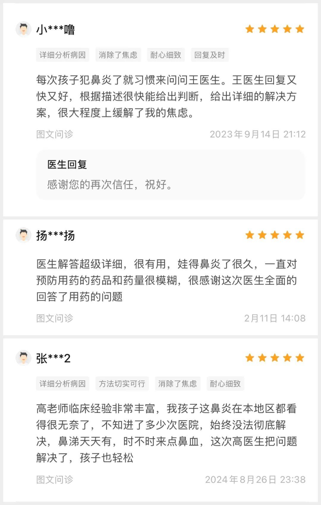 這些都是問診過鼻炎問題的患者們的真實評價。