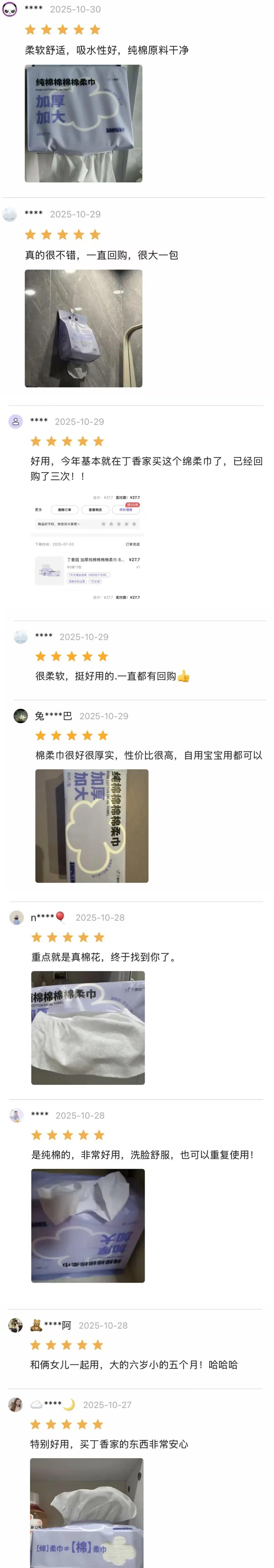 我們做棉柔巾,真純屬於給我們自己和大家謀福利。因爲我們的單量實在太小,廠家一開始都不願意接我們的訂單,真是用丁香的名氣舔着臉請他們做,而且我們還要保證用好原料、好工藝,所以根本沒談到什麼大賺錢的好價格。反正算下來差不多一包賺幾毛錢,如果大家對這個品的喜愛度一般,那它就只能說拜拜了……