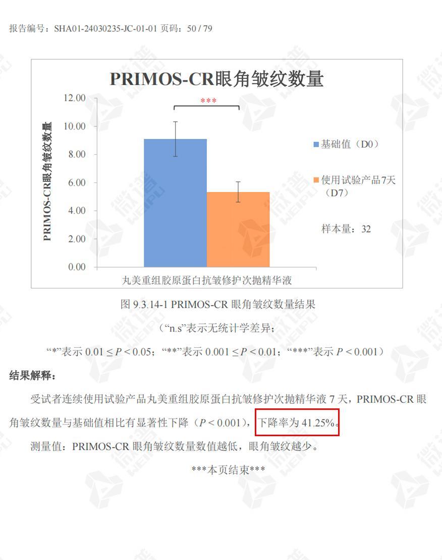 報告爲證:31 名敏感肌人羣連續使用 4 周,0 不良反應,且 TEWL 值(經表皮水分流失)、眼下皺紋體積等多個抗皺指標也顯著降低~