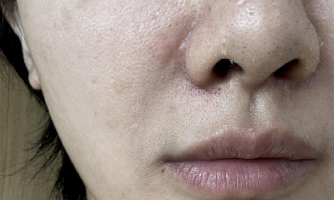 但臉頰其他地方呢,卻又幹到爆皮、卡粉,簡直就是地獄模式……