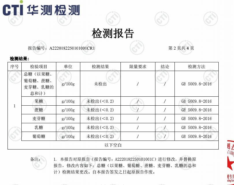必須給大家喫個放心丸,說是軟糖,但它完全無額外添加糖,還通過了專業的無糖檢測,達到了 0 糖 * 標準!(* 國標中 0 糖指的是:糖的含量每 100 g 中小於等於 0.5 g。)