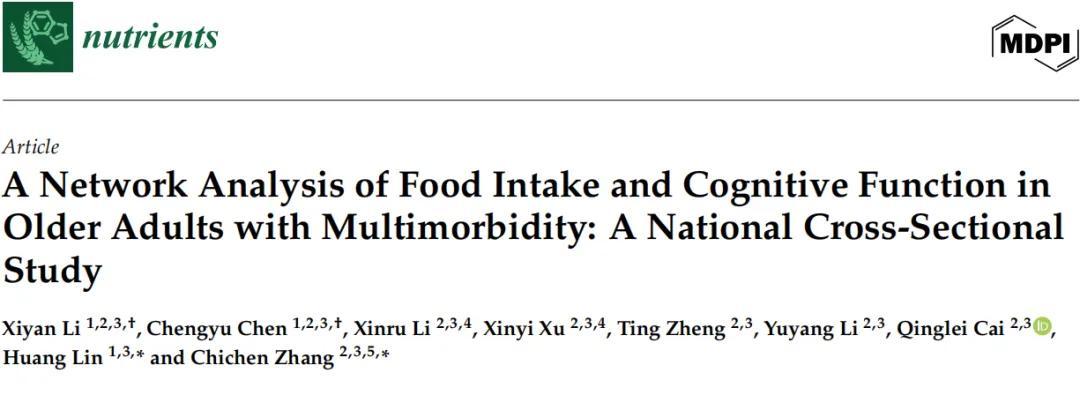 研究人員通過收集食物攝入頻率(幾乎每天、經常、偶爾、很少/從不),同時用“簡易精神狀態檢查”對認知進行評分,像繪製“認知關係網絡圖”一樣將兩者“連”在一起,13類食物、5個認知維度均爲獨立的“節點”。