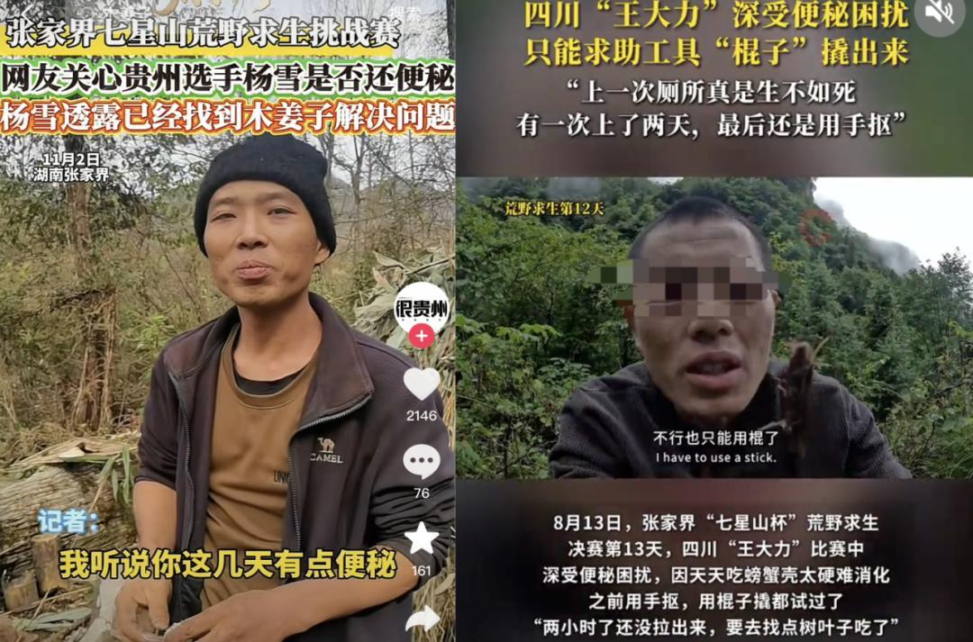 每天只喫野菜野果,這一屆包括上一屆選手多少都出現了便祕問題。