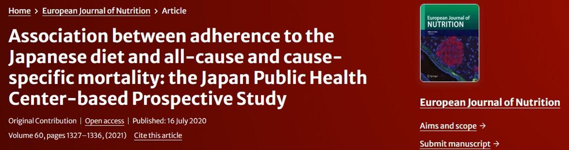 日本東北大學醫學系研究科公衆衛生學在《歐洲營養雜誌》上發表了一項針對9.2萬人的研究指出,飲食習慣或是日本人長壽的祕訣。