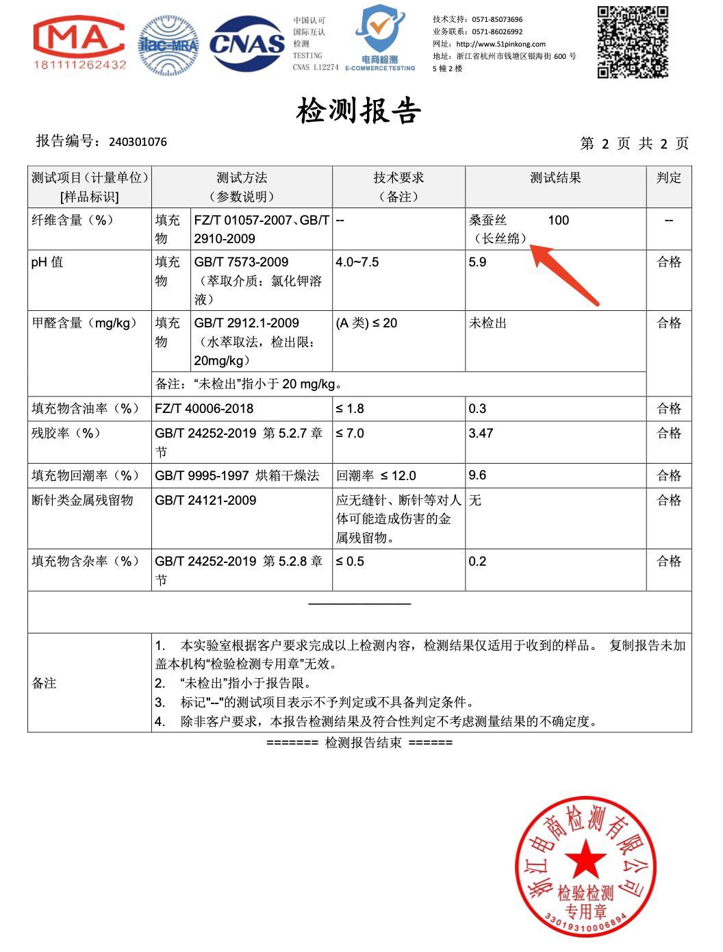 我們這款蠶絲被填充的是 100% 桑蠶長絲,檢驗報告給大家出具下,童叟無欺。