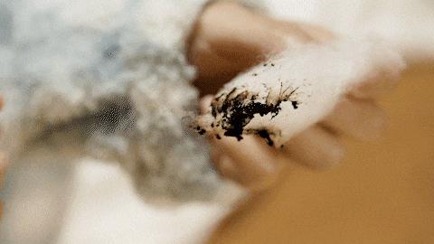 我們取出一團蠶絲點火,聞起來就是毛髮(動物蛋白)燃燒的味道,燃燒後灰燼呈現黑色的小球狀。