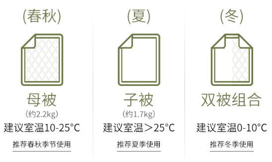 從被子實用性和適配度考慮,這款子母被幾乎可以承包你的一年四季: