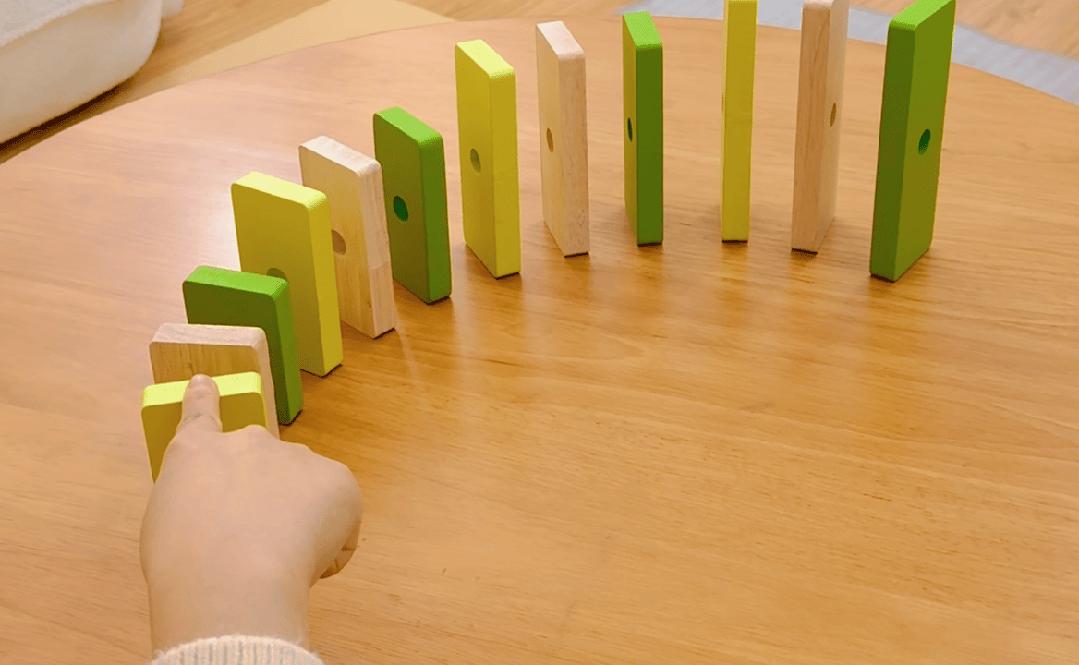 比如像這樣擺放積木,寶寶將會收穫一次獨特的「多米諾」體驗: