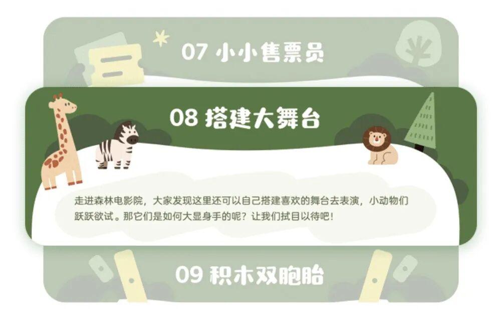 越疊越高的灌木叢,是動物們開啓叢林狂歡的第一站,更是對寶寶平衡能力的一次小小考驗。試試看,我們的寶貝能幫棕熊完成最高舞臺的挑戰嗎?
