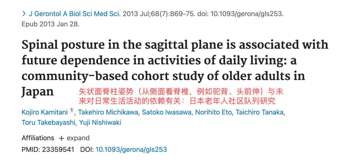 2013 年發表在《老年醫學雜誌》上的一項研究表明,不良的脊柱姿勢,會增加日常生活活動(例如穿衣或洗澡)喪失獨立性的風險。