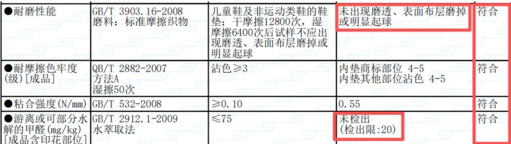 鞋墊的耐磨性、耐磨擦色牢度都符合要求,甲醛也未檢出。