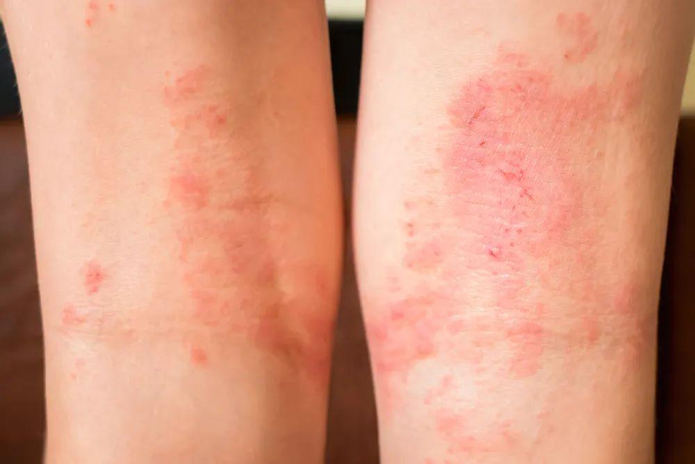 典型的特徵就是皮膚乾燥、瘙癢、表皮脫屑、丘疹、紅斑、水皰等症狀,伴有局部滲出和融合趨勢的皮疹。