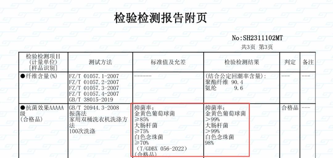 並且,整套保暖內衣符合 T/TTGA 007-2024 10 A 級抗菌標準,對多種細菌的抑菌率高達 98%~99%。