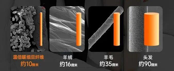 織出的衣物,纖維排列更密,能高效地阻隔冷空氣(纖維細度越小,熱輻射穿透能力越弱),讓你就像裹着一層會呼吸的「保溫暖絨層」,又暖又舒服——