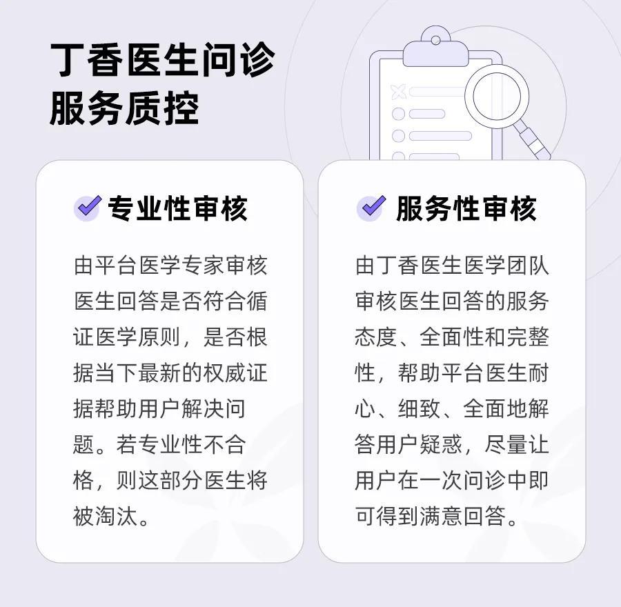 除了醫生本身的從業背景篩選,丁香醫生也針對線上問診服務專門建立了一套質控審覈機制。