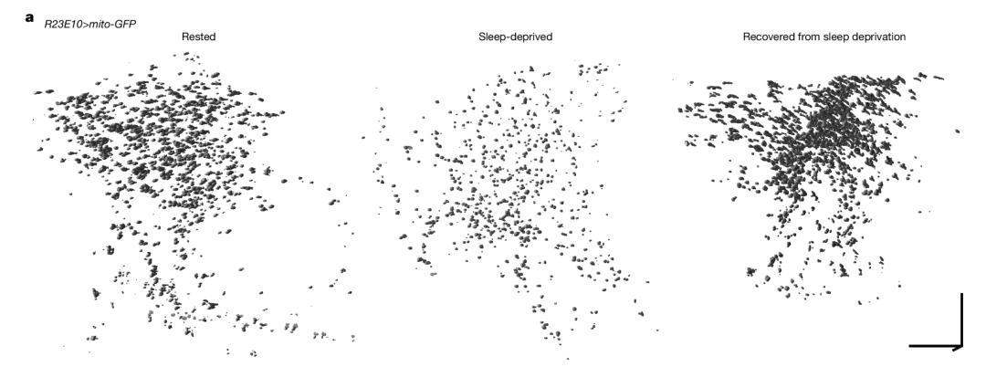 調控睡眠的神經元裏,線粒體會變小、斷裂,表現出能量系統進入應激狀態的跡象[5]。
