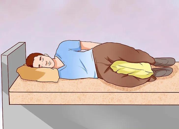 側臥:兩條腿都彎曲起來,膝蓋中間夾一個枕頭,保持骨盆不發生旋轉;在腰和牀的空隙位置,墊一個小枕頭或小毛巾卷,給腰部一個更好的緩衝作用。