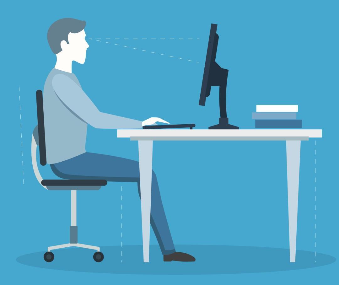 - 坐下時,臀部儘量靠近椅子最後方,上身遠離靠背,微微前傾。