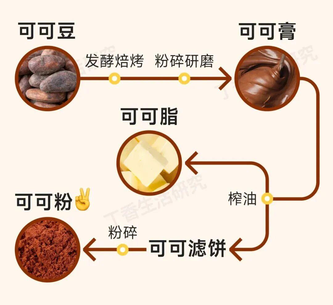 從加工和原料角度,有獨特絲滑口感的可可脂最爲寶貴,可可粉是榨取可可脂剩下的副產物。