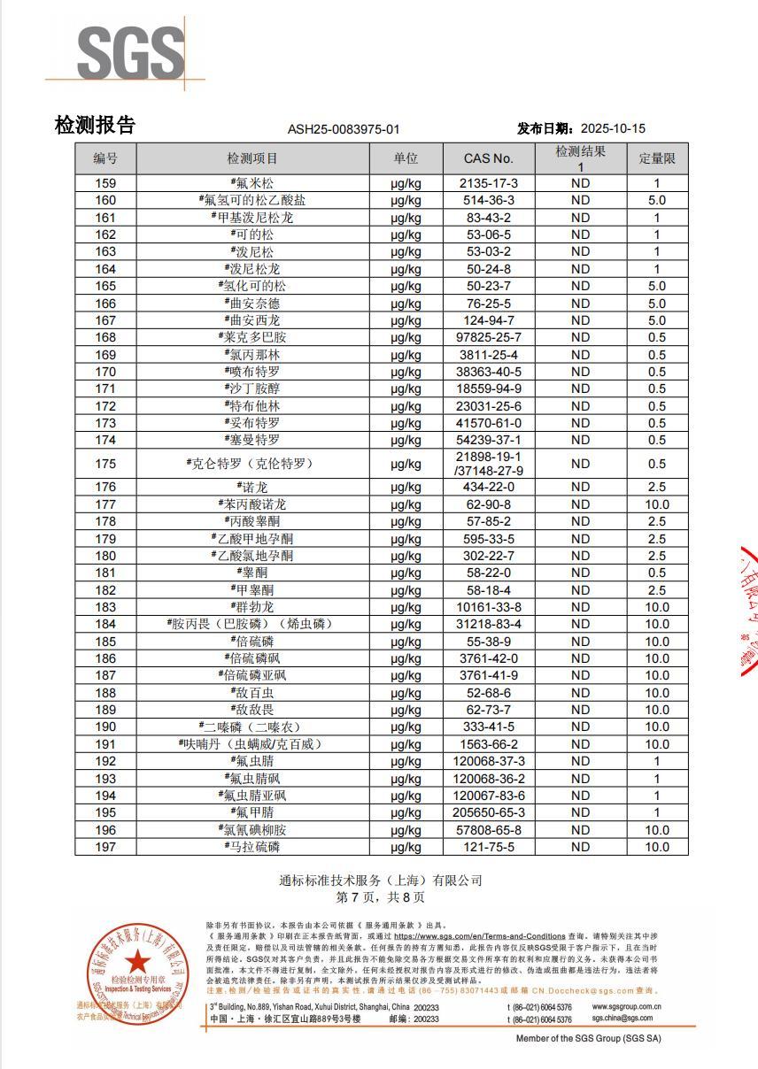 餡料經 SGS 檢測報告顯示,抗生素、瘦肉精等多項指標均未檢出,原料足夠安心。