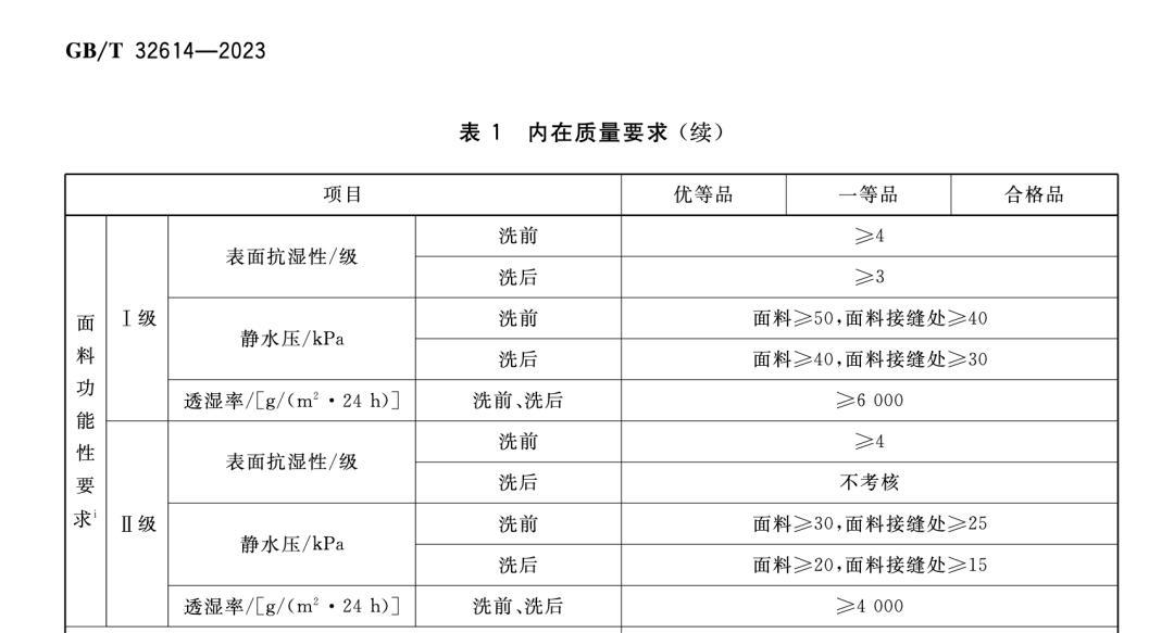 衝鋒衣作爲一個大的功能服飾,其實早就有專門執行標準了,現行標準是: GB/T 32614-2023,於 2024 年 4 月起實施。