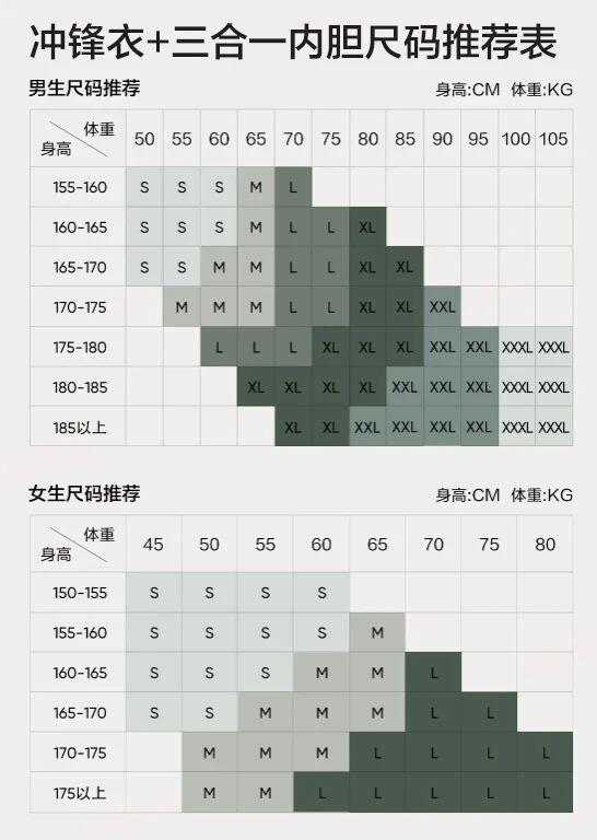 建議北方的朋友直接衝羽絨內膽,南方的小夥伴們可以根據參考溫度,進行挑選!