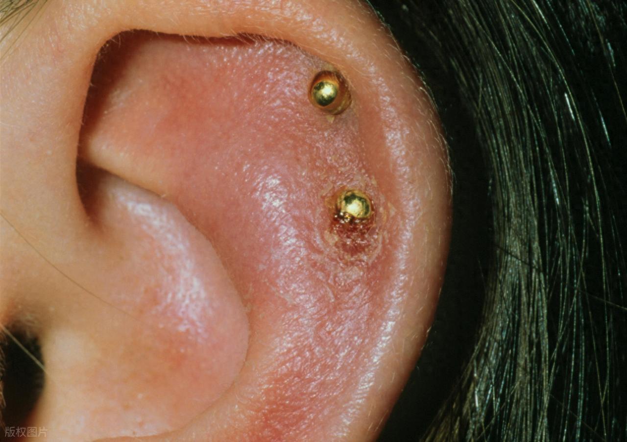 佩戴的耳飾材質不合適(如鎳合金、劣質塑料),可能引發過敏反應,導致耳洞周圍皮膚髮炎、滲出液體,嚴重時會出現流膿,常伴有瘙癢、皮疹。