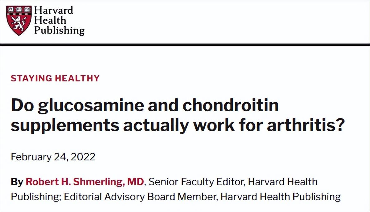 哈佛官網一篇2022年的文章對氨糖是否有作用表達的結論是不太清楚,而且該文章裏提到,2018年同樣一項研究明確指出大型臨牀研究未能證實其優越性。