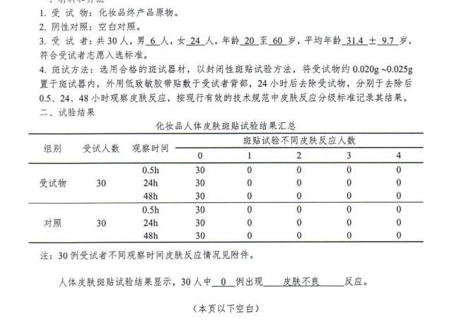 根據人體皮膚斑貼測試顯示,受試者中,0 例出現皮膚不良反應。