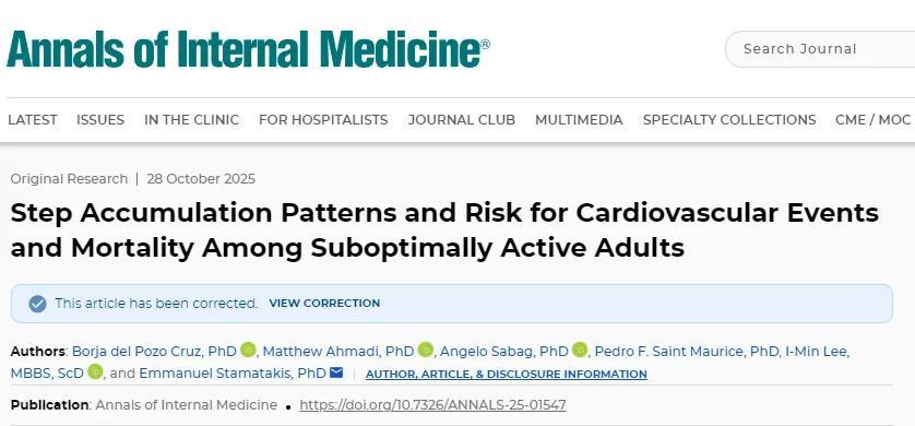 最近美國醫師協會《內科學年鑑》發表的一項研究提示,同樣每天走7000步的兩個人,心血管事件的發生風險可能完全不同,原因在於這7000步具體是怎麼積累的。