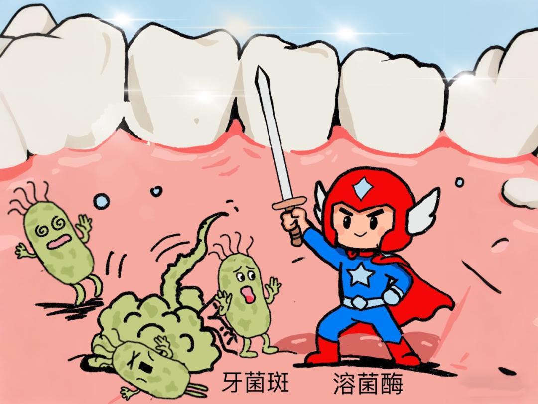 咋辦呢?其實,我們口腔裏自帶一位專門克它的專家——溶菌酶,酶如其名,它可以瓦解掉細菌、擊垮牙菌斑。