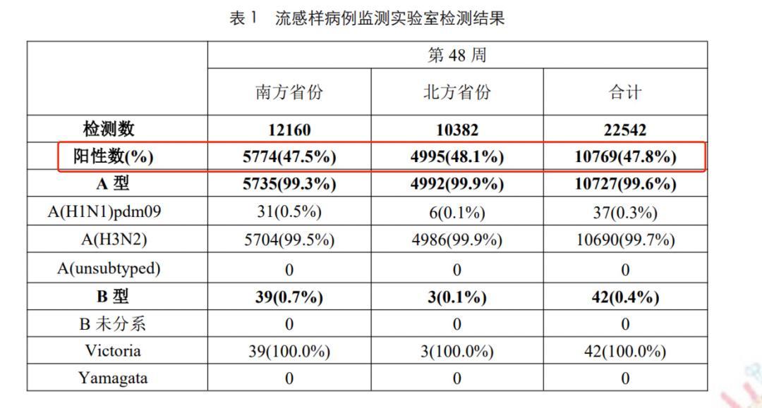 還有一個數據引起了廣泛關注:流感檢測陽性率達到 47.8%。