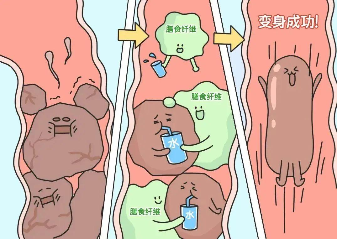 一是幫助便便成形:促進腸道蠕動,同時吸水膨脹增加糞便體積。