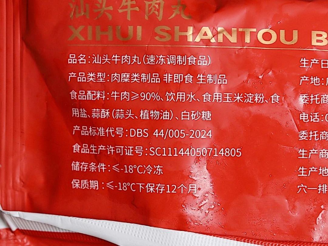 這一點上,喜輝這款五星牛肉丸真的很地道,它就是執行的「汕頭牛肉丸標準」!主要配料就是牛肉,沒有其他肉混入其中。