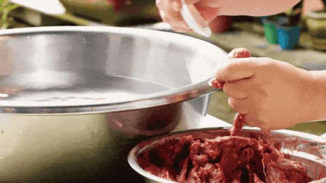 由機器模擬老師傅的傳統捶打工藝,直到肉漿出膠,加入一定的配料,再擠出一顆顆圓滾滾的牛肉丸,每一顆丸子都帶着傳統手作的記憶。