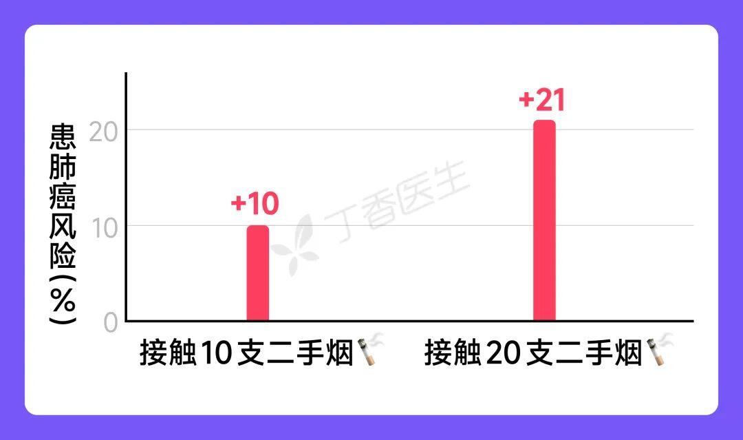 ● 每日接觸 20 支二手菸,患肺癌風險增加 21%。