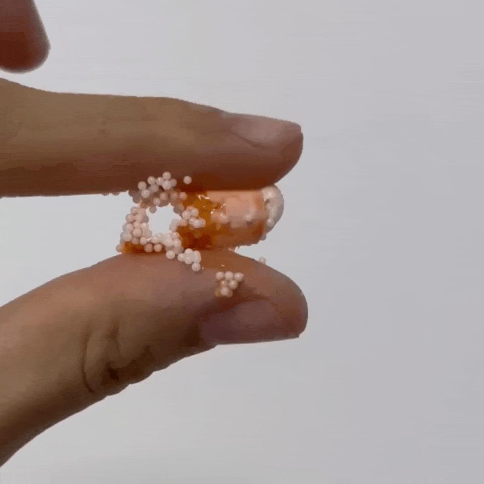 哪怕溫水短時間接觸,膠囊只是化了一部分,也會變得像粘了一塊泡泡糖,很黏、很拉絲……硬拽下來也會有殘留。