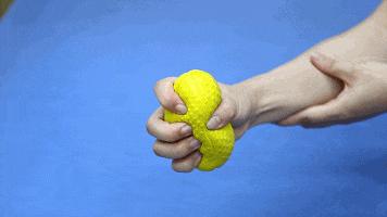 手持直徑5~8釐米壓力球,緩慢用力擠壓至球體變形,保持2~3秒後放松;可結合手腕順、逆時針各旋轉10圈。每次10~15分鐘,每天2~3次。