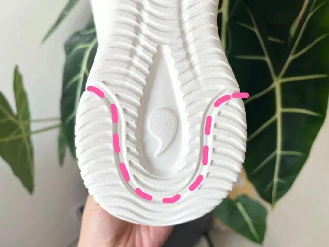 借鑑馬蹄的 U 型結構(專利號:2023211352390),在後跟設計了馬蹄形減震系統。