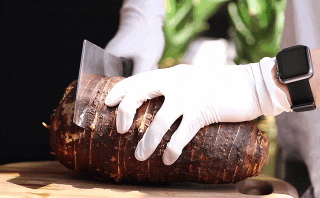◎芋頭黏液含有皁甙,直接接觸皮膚可能引起過敏,如果需要給生芋頭去皮,建議戴手套,若不小心沾到黏液,可塗抹生薑、醋或在熱源上烤一會手止癢,注意距離和溫度,以免燙傷。