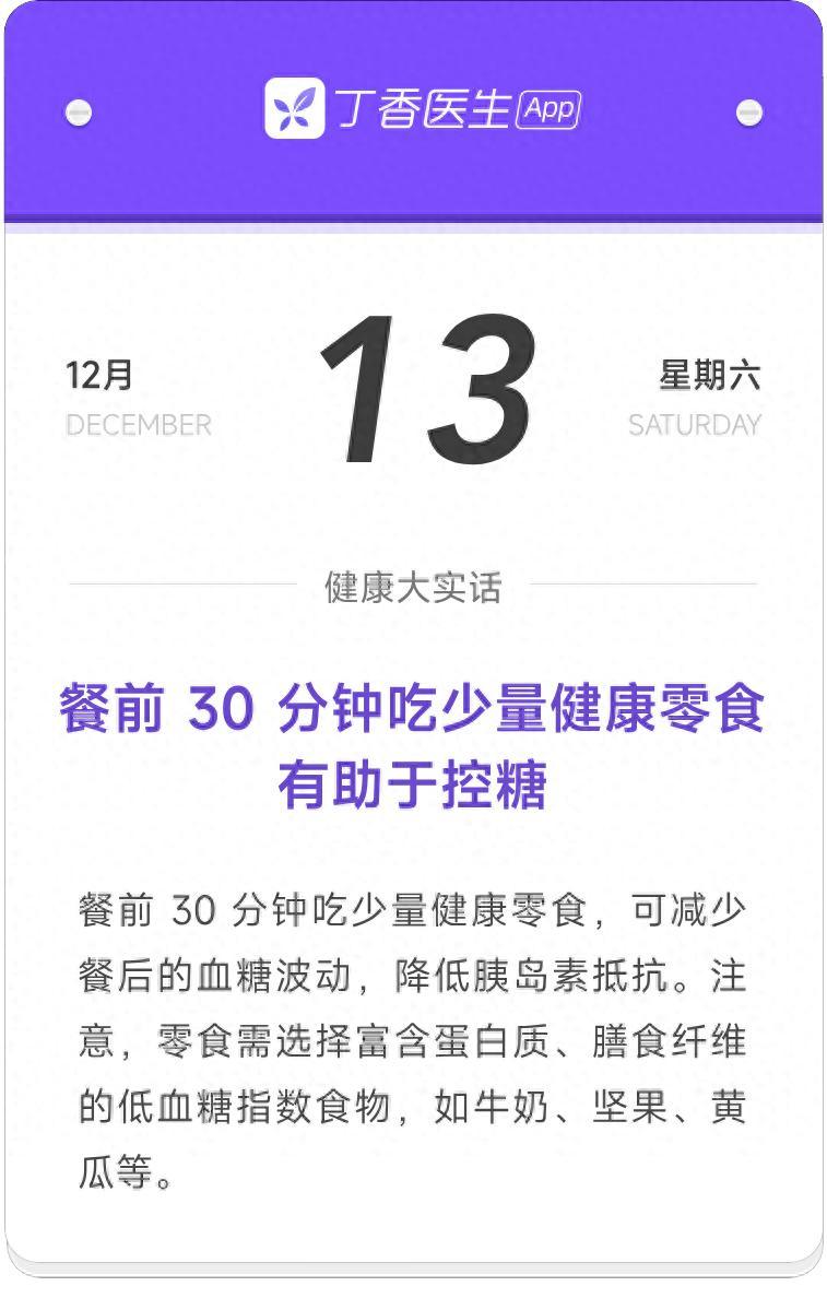 這個控糖小技巧也被稱爲「餐前負荷」,可以提前調動胰島素分泌,幫助抑制餐後血糖上升。不過選擇的零食熱量可別太高,適量墊吧墊吧就好。