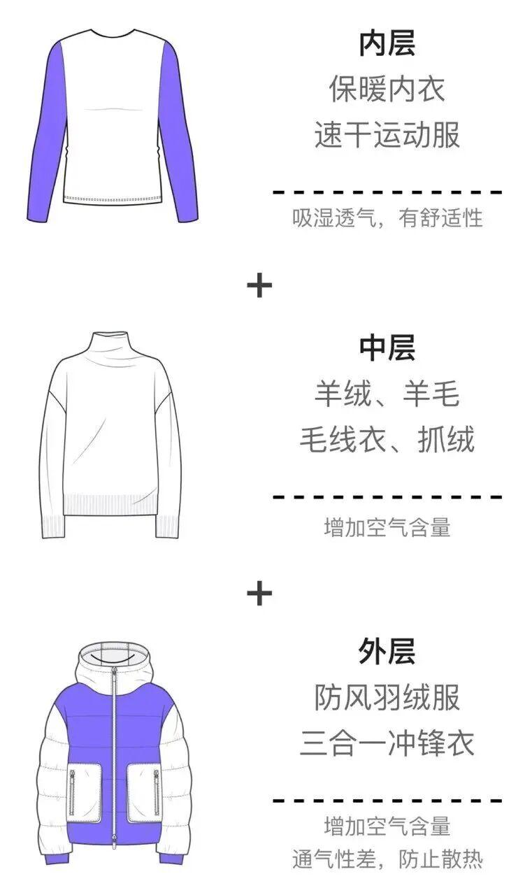 按照三明治穿衣法,我們分爲貼身吸汗速幹、中層保暖、外套防風/防雨、保暖配件四個部分。