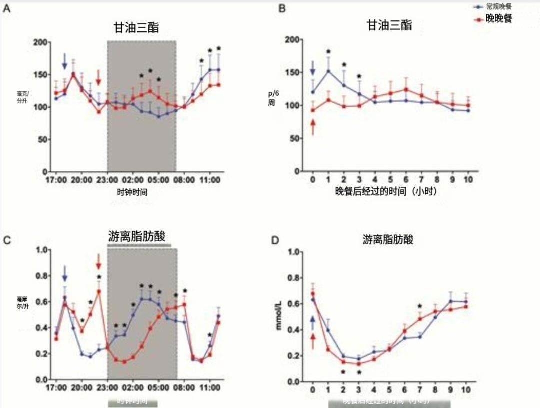 研究者們做了一個很絕的實驗:讓同一批人,喫一模一樣的飯,只是一頓在晚上 6 點喫,一頓熬到 10 點喫。