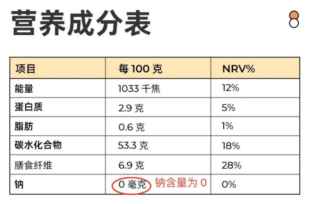 再看營養成分表,忍不住要誇誇它,每百克 0.6 克的脂肪、0 毫克的鈉含量。