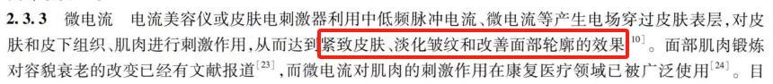一個利用中低頻脈衝電流、微電流產生能穿過皮膚表層,對皮膚和皮下組織、肌肉進行刺激作用的電場,從而達到緊緻皮膚、淡化皺紋和改善面部輪廓的效果的技術[1]。